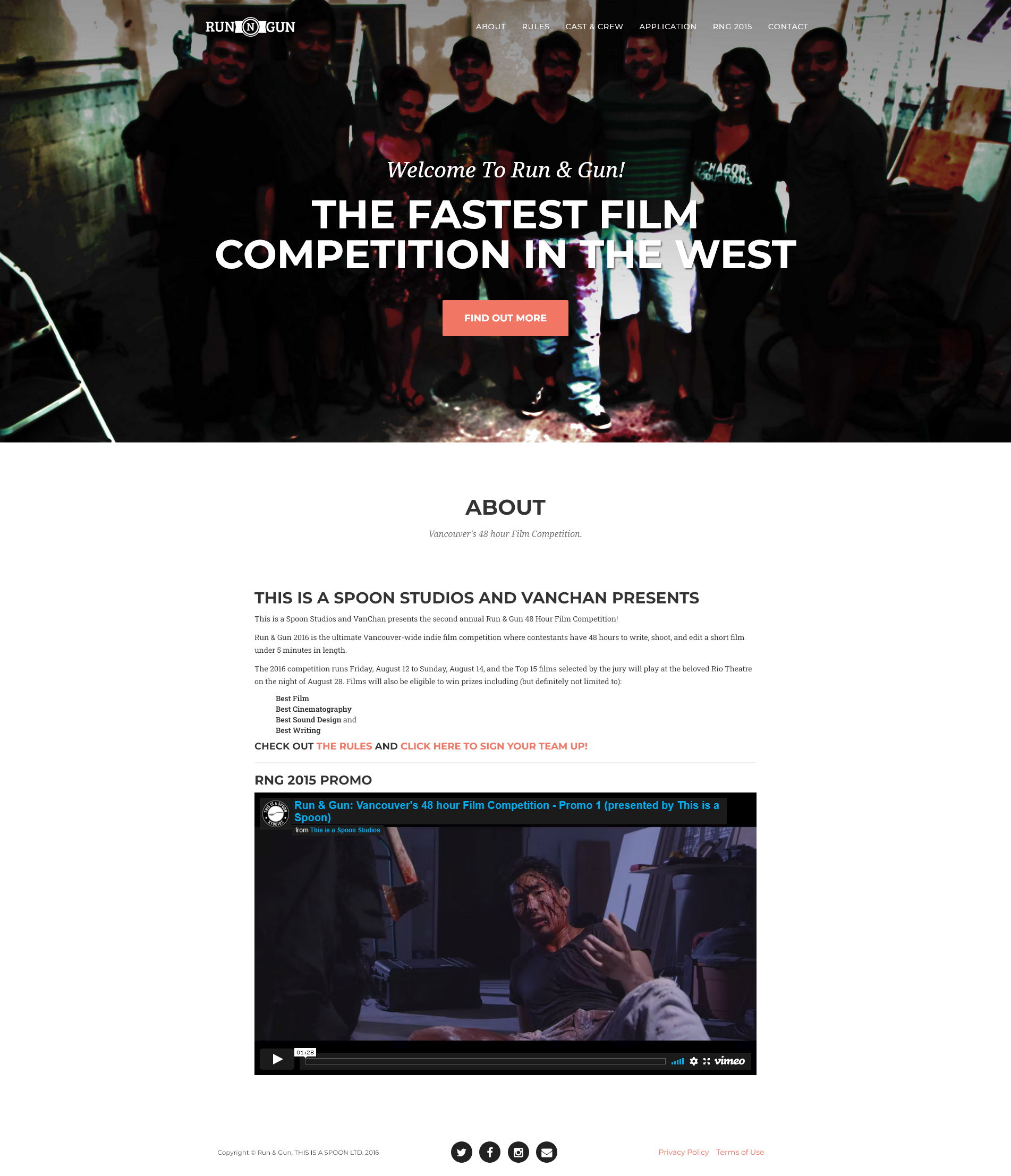 Run & Gun Film Fest is a 48-hour film competition and festival in Vancouver, BC. Their website allowed competitors to create team, register actors and more.